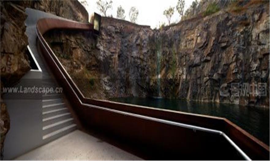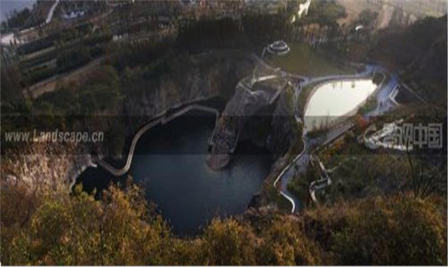 礦坑獨特的空間形態(tài)為設(shè)計師營造一處不同尋常的景觀提供了可能,但景觀設(shè)計師同時也面臨著諸多挑戰(zhàn)。如,嚴(yán)重退化的生態(tài)環(huán)境和荒廢的景觀重建問題。最后,團(tuán)隊以“最小干預(yù)”、“應(yīng)對采石礦坑的生態(tài)修復(fù)”及“體現(xiàn)東方山水意韻”為設(shè)計理念,在對場地充分研究分析的基礎(chǔ)上,礦坑花園最終被劃分成3個部分:平湖區(qū)、臺地區(qū)和深潭區(qū)。鑒于復(fù)雜的場地條件和特殊的設(shè)計方案,該項目中運(yùn)用了多處高難度的施工技術(shù),設(shè)計師及爆破專家在大量的巖石改造工程中表現(xiàn)出了足夠的魄力。