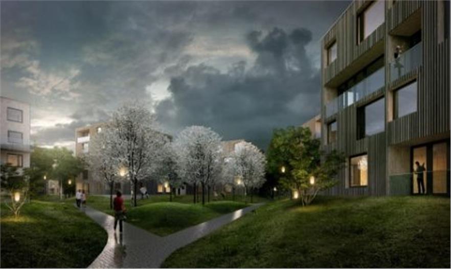 這次競(jìng)賽的主題是住宅區(qū)開發(fā),讓市民生活的環(huán)境更加綠意盎然。獲獎(jiǎng)項(xiàng)目涉及擁有700戶住宅的綜合住宅區(qū),是一個(gè)住區(qū)景觀建設(shè)項(xiàng)目??傮w設(shè)計(jì)理念是建造造型簡(jiǎn)單的住宅樓,明確劃分住宅區(qū)里的公共區(qū)域和半公共空間。