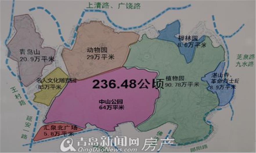 目前整個(gè)太平山西起興安山路、王村路、延安一路,東至芝泉路、九水路,南到香港西路,北至上清路、廣饒路,是市南沿海一線第一高峰,其主要由中山公園、植物園、動(dòng)物園、櫸林園、青島山、名人文化雕塑園、匯泉北廣場、湛山寺和革命烈士紀(jì)念館組成,其中中山公園占地面積65萬平方米,植物園占地面積90.78萬平方米以及動(dòng)物園占地面積29萬平方米,這三處占地面積最大的公園區(qū)域?qū)?gòu)成世園會(huì)分會(huì)場。