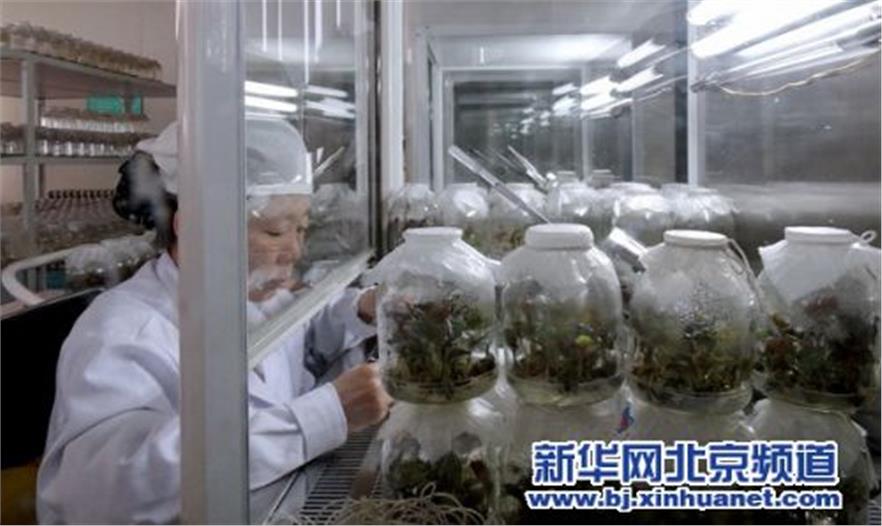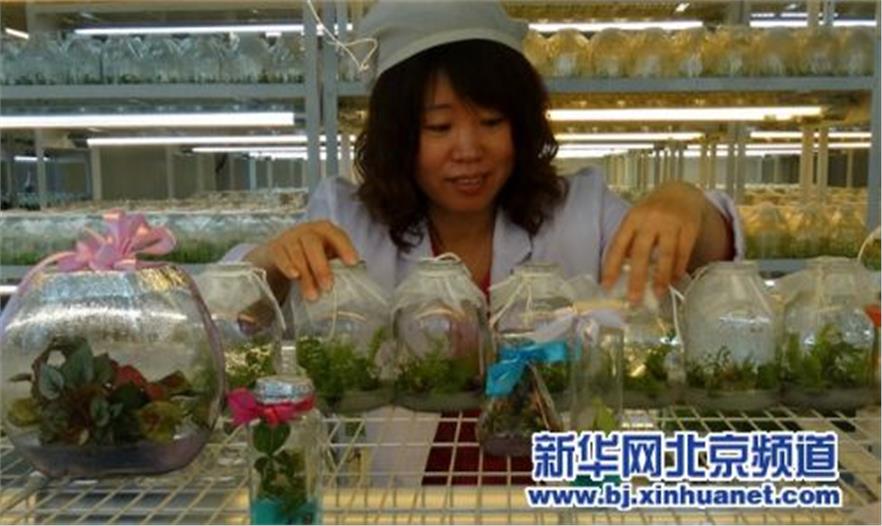 4月16日,北京豐臺(tái)區(qū)花鄉(xiāng)花木集團(tuán)的技術(shù)人員在無菌室內(nèi)培育花卉幼苗。