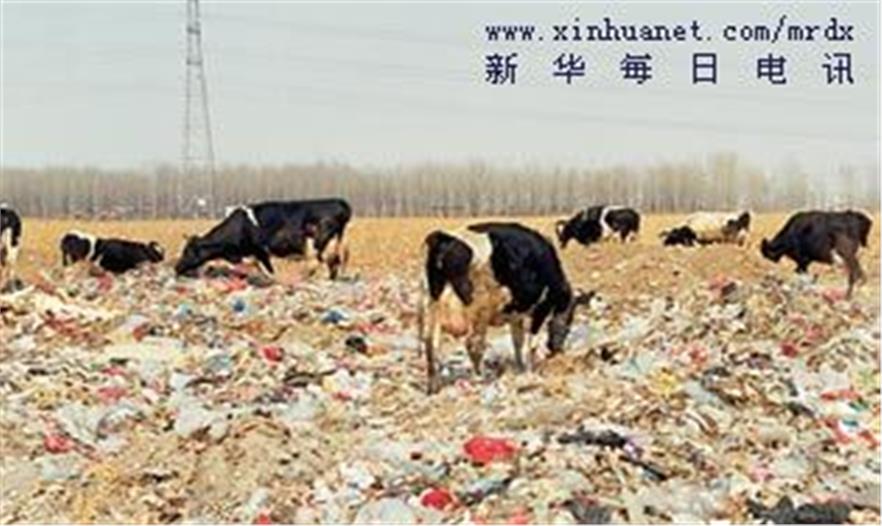河邊是一片散發(fā)著臭味的垃圾場(chǎng),紅的、白的、黃的、灰的、黑的,各色垃圾堆滿了一地。附近養(yǎng)殖場(chǎng)的幾頭奶牛每天都踱步來到小河邊喝水,喝足水的奶牛習(xí)慣性地來到垃圾場(chǎng)上咬咬啃啃,搜尋著可吃的東西。