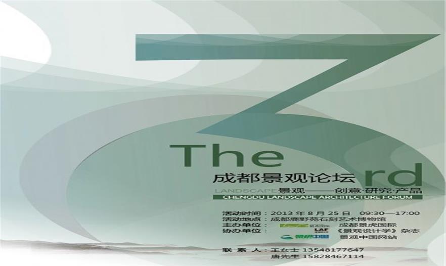第三屆成都景觀論壇將于2013年8月25日在成都市郫縣鹿野苑召開。本次論壇主題為“景觀——創(chuàng)意·研究·產(chǎn)品”,活動由成都景虎國際景觀設(shè)計有限責(zé)任公司主辦,《景觀設(shè)計學(xué)》雜志、景觀中國網(wǎng)站協(xié)辦。屆時來自景觀設(shè)計行業(yè)的設(shè)計公司代表、房產(chǎn)開發(fā)企業(yè)代表將與專業(yè)的學(xué)界、高校代表以及行業(yè)媒體人士共同就“景觀創(chuàng)新與行業(yè)發(fā)展”、“研究·設(shè)計·產(chǎn)品”等議題展開熱烈的探討。
