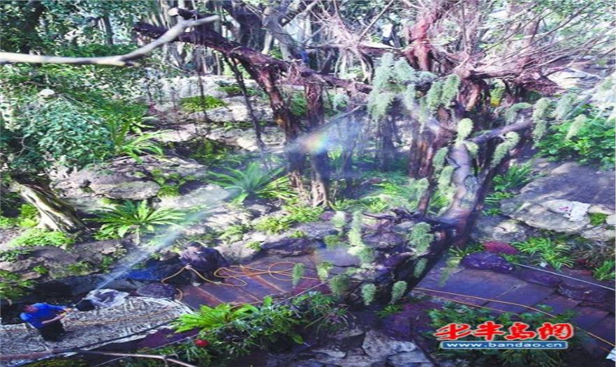 工作人員在養(yǎng)護(hù)菩提榕樹(shù)