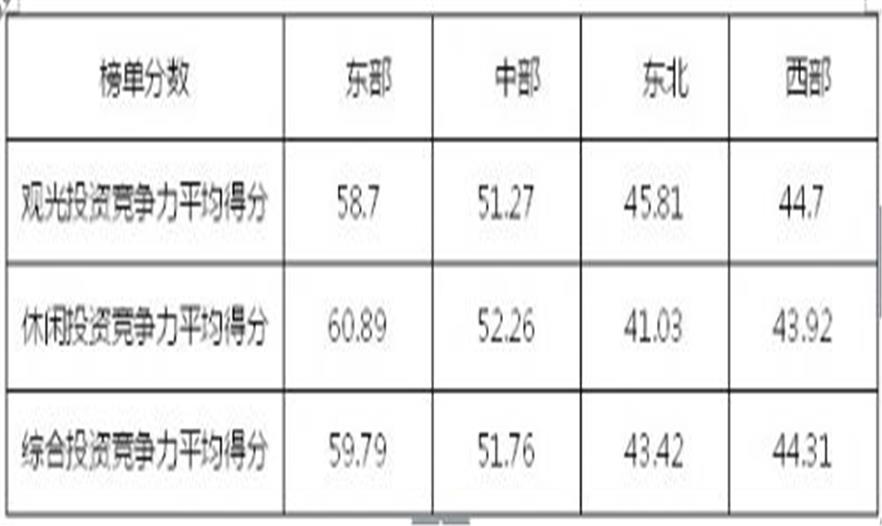 2013年城市綜合旅游投資競爭力排名中,東部發(fā)達(dá)地區(qū)的城市表現(xiàn)強(qiáng)勁,中部地區(qū)城市旅游投資競爭力也表現(xiàn)不俗,而西部地區(qū)整體城市旅游投資競爭力最弱,其中青海、西藏、新疆、甘肅等省區(qū)除卻個(gè)別中心城市排名較高之外,其他大多數(shù)城市排名較為靠后。從旅游投資競爭力得分上看,我國西部與東北地區(qū)的城市得分普遍較低,觀光投資競爭力平均得分分別為44.7和45.81,休閑投資競爭力平均得分分別為43.92和41.03,綜合投資競爭力平均得分分別只有44.31分和43.42分。