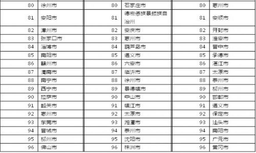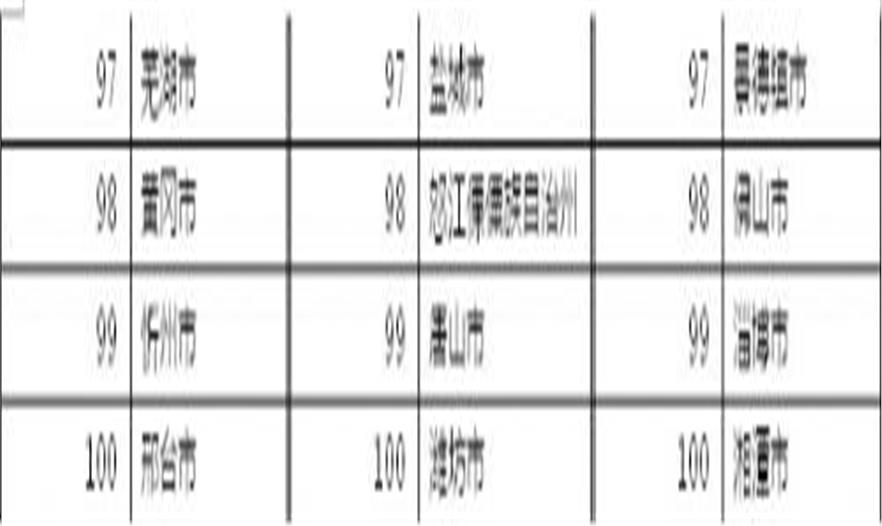 表2 2013年中國城市“旅游投資競爭力”百強(qiáng)名單