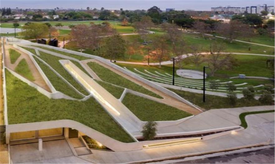 博物館位于泛太平洋公園內,如此大體量的建筑與公園現(xiàn)有的景觀融合,并在空間分布上達到了一個平衡。
