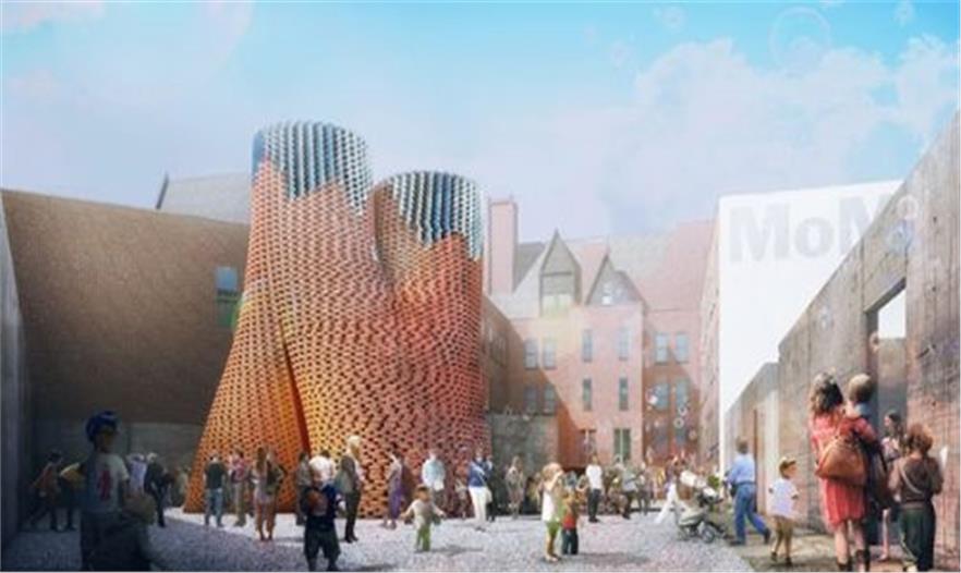 近日,紐約現(xiàn)代博物館公布了2014年美國P.S.1青年建筑師設計大賽獲獎方案,來自紐約的The Living建筑工作室摘得本次大賽的冠軍。The Living建筑工作室完全以玉米秸稈和蘑菇為原材料燒制成生物磚,并以此在紐約美術畫廊的后院搭建了這個橙色的圓柱塔。同往年的獲獎作品一樣,本次的臨時裝置建筑作品同樣會亮相紐約現(xiàn)代博物館夏季在皇后區(qū)美術畫廊舉辦的藝術慶典和音樂節(jié)上。