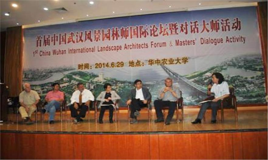 論壇分為29日上午和下午的風(fēng)景園林大師專場學(xué)術(shù)講座,以及大師對話交流活動兩部分。上午講座由華中農(nóng)業(yè)大學(xué)園藝林學(xué)學(xué)院教授張斌主持。第十屆中國國際園林博覽會武漢籌備工作指揮部規(guī)劃設(shè)計部部長、武漢園林局總工程師孟勇首先代表第十屆中國國際園林博覽會武漢籌備工作指揮部對中外來賓表示了熱烈的歡迎。孟勇表示:"我國十八大報告提出要建設(shè)"五位一體"的國家,特別強(qiáng)調(diào)優(yōu)化國土空間的開發(fā)格局,全面促進(jìn)資源節(jié)約,加大資源生態(tài)系統(tǒng)和環(huán)境保護(hù)力度,加強(qiáng)生態(tài)文明制度建設(shè),努力走社會主義生態(tài)文明建設(shè)的美麗中國道路?,F(xiàn)在百姓越來越重視休閑娛樂、宜居城市的建設(shè),園林發(fā)展和文化建設(shè)、社會建設(shè)、經(jīng)濟(jì)政治建設(shè)之間如何和諧發(fā)展,園林景觀應(yīng)該擔(dān)當(dāng)什么樣的角色?2015年舉辦的第十屆中國國際園林博覽會,將講述一個城市怎么樣回歸生態(tài)、回歸自然的過程"。