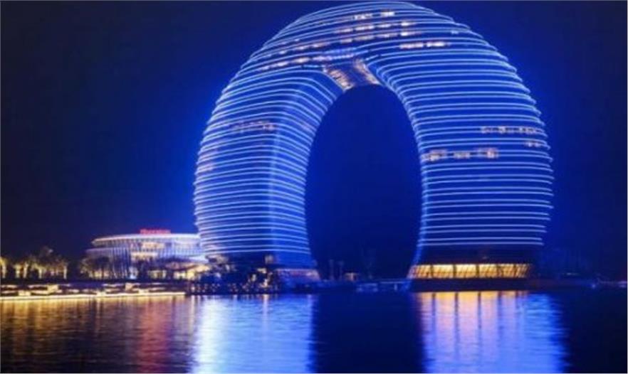 中國湖州喜來登溫泉度假酒店,又名(月亮酒店),位于湖州市南太湖旅游度假區(qū)核心板塊。這座國內(nèi)首家水上白金七星級酒店,由美國MAD建筑師事務(wù)所、世界知名建筑大師馬巖松先生主創(chuàng)設(shè)計(jì),耳目一新的指環(huán)型形狀,將水的動(dòng)、靜態(tài)之美結(jié)合,是中國湖州“世界第九灣”的標(biāo)志性建筑。