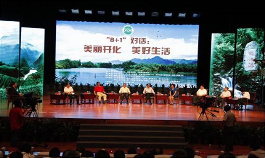 8月24日,大型電視訪談節(jié)目“8+1對(duì)話:美麗開化,美好生活”在浙江省衢州市開化縣國(guó)家東部公園舉行。由國(guó)家林業(yè)局副局長(zhǎng)張永利,中國(guó)工程院院士、著名環(huán)境工程專家侯立安,北京林業(yè)大學(xué)校長(zhǎng)、博士生導(dǎo)師、中國(guó)林業(yè)經(jīng)濟(jì)學(xué)會(huì)副理事長(zhǎng)宋維明,美國(guó)哈佛大學(xué)設(shè)計(jì)學(xué)博士、博士生導(dǎo)師、北京大學(xué)建筑與景觀設(shè)計(jì)學(xué)院院長(zhǎng)、教授,土人設(shè)計(jì)首席設(shè)計(jì)師俞孔堅(jiān),農(nóng)民日?qǐng)?bào)總編輯孫林,浙江省林業(yè)廳巡視員、浙江省野生動(dòng)植物保護(hù)協(xié)會(huì)會(huì)長(zhǎng)葉勝榮,中共浙江省開化縣委書記鮑秀英,中國(guó)演員工作委員會(huì)副會(huì)長(zhǎng)、總政話劇團(tuán)著名影視演員、周恩來(lái)總理扮演者、綠色中國(guó)形象大使劉勁等8位領(lǐng)導(dǎo)專家組成的嘉賓團(tuán)隊(duì),與擔(dān)任現(xiàn)場(chǎng)主持的中央電視臺(tái)著名主持人宋英杰舉行了“8+1對(duì)話”,與會(huì)領(lǐng)導(dǎo)、專家和現(xiàn)場(chǎng)來(lái)賓、媒體記者互動(dòng),共同圍繞“美麗開化,美好生活”這一主題,進(jìn)行了深入對(duì)話和探討。對(duì)話結(jié)束時(shí),全體與會(huì)者共同發(fā)表了《開化生態(tài)宣言》。