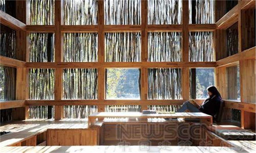 李曉東在北京清華大學教學,此次的作品擊敗了來自9個國家的競爭者。李曉東設計的籬苑書屋坐落在交界河村一處背山面水的荒地,書屋工程于2011年1月正式啟動,經(jīng)過兩個多月的設計,2011年3月29日正式開始施工,并于2011年10月竣工交付使用。建成之后,書屋可以向游客及村民提供免費的閱覽讀物和空間,同時亦可作為游客及村民相互交流的一處清舍雅苑。