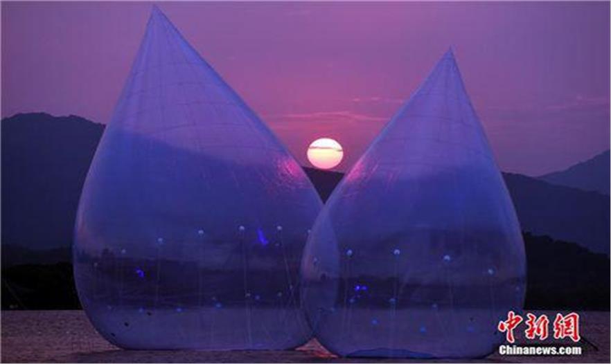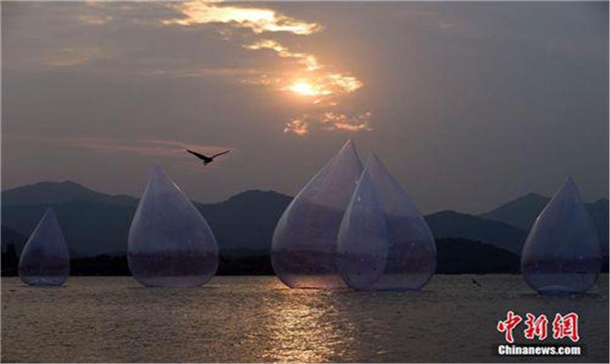 巨型“水滴”裝置亮相西湖