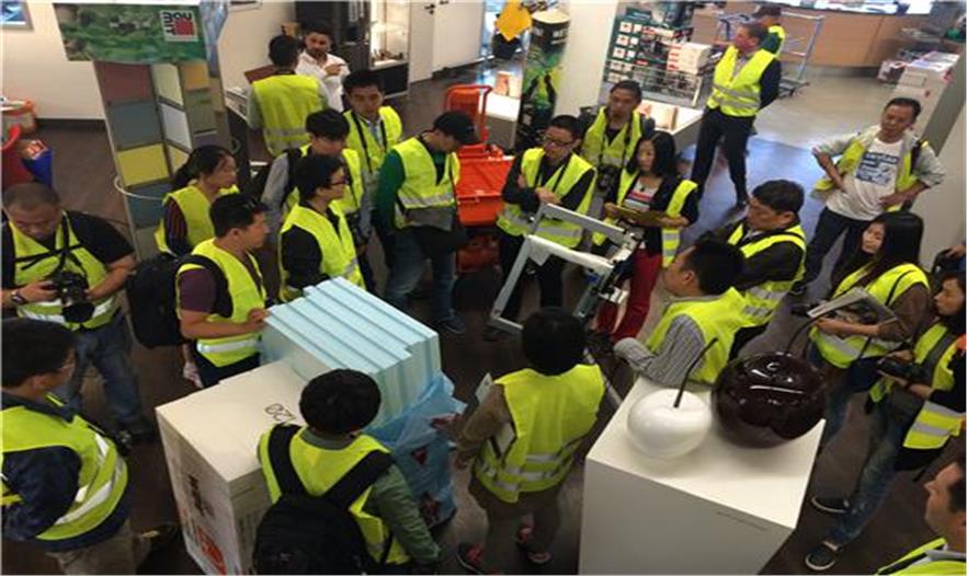 游學(xué)考察的第四個主題內(nèi)容是:了解德國建筑景觀材料新技術(shù)及應(yīng)用,課程中大家深入了解了有上百年歷史、以百余年的時間致力于透水地磚產(chǎn)品研發(fā)的家族企業(yè)克羅斯托曼公司(Klostermann)以及該公司的景觀材料運用展示區(qū)千石公園,在萊布卡赫(Raab Karcher)建筑景觀材料市場了解各種新型的建筑材料。