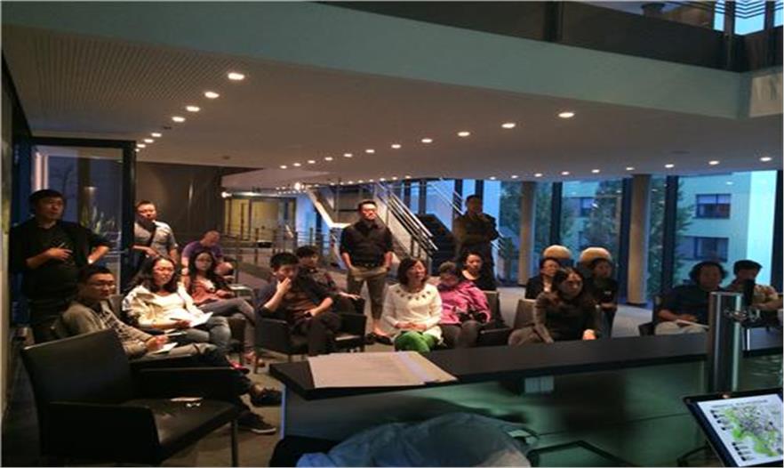游學(xué)第二個主題內(nèi)容是:德國生態(tài)城市設(shè)計、城市生態(tài)水系統(tǒng)設(shè)計及水景觀利用,圍繞這個主題,考察走訪了戴水道Dreiseitl在斯圖加特設(shè)計的代表性雨水利用項目;在斯圖加特大學(xué)景觀規(guī)劃與生態(tài)學(xué)院聆聽學(xué)術(shù)報告并參觀2014年9月剛剛獲得歐洲景觀獎(Europaeischer Gartenpreis)一等獎的綠縫公園Gruene Fuege和蘇德海姆廣場Suedheimer Platz;考察團重點參觀了弗賴堡市Vauban低碳發(fā)展示范社區(qū),德國創(chuàng)新與可持續(xù)學(xué)術(shù)協(xié)會(Innovation Akademy e.V.)專業(yè)人員系統(tǒng)的向大家介紹了沃邦能源社區(qū)的規(guī)劃和設(shè)計理念。