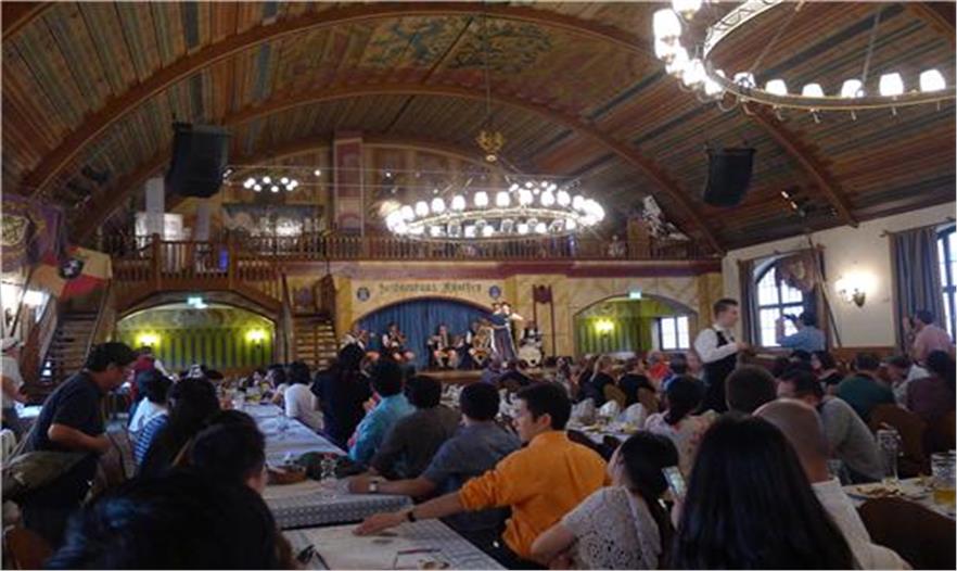 組織方同時組織了豐富多彩的文化體驗:體驗德國各州地區(qū)的特色美食;住宿各種風(fēng)景獨特的酒店;在葡萄酒之王——雷司令產(chǎn)地,參觀歷史悠久的酒窖,參加趣味葡萄酒鑒賞活動;在酒吧里和德國人一起慶祝世界杯奪冠;在慕尼黑最著名的HB千人啤酒館,體會德國人與啤酒的狂歡,每期班也在這里進行了告別晚宴,大家歡歌笑語、開懷暢飲結(jié)下了深厚的友誼。