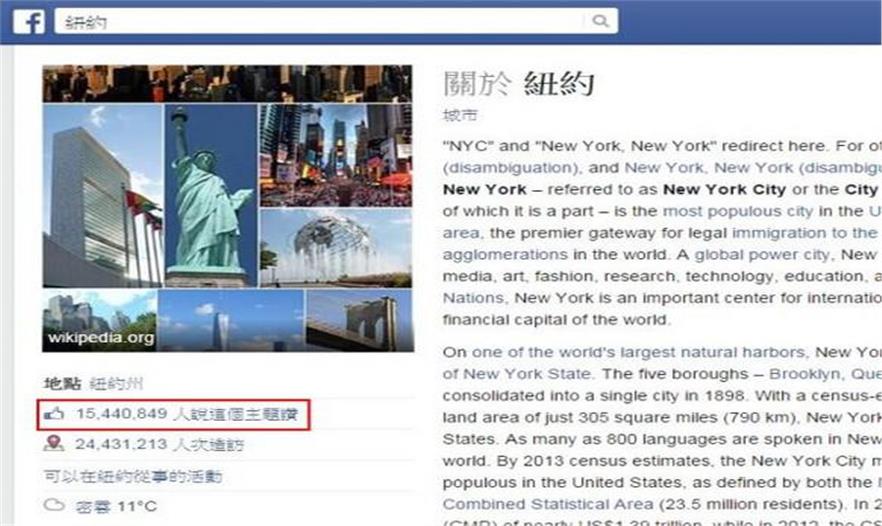 報(bào)道稱(chēng),臉書(shū)將全球城市結(jié)合維基百科頁(yè)面,創(chuàng)立“城市專(zhuān)頁(yè)”,目的在于希望用戶(hù)提供更多的旅游指南以及建議,互相分享,好讓其他人在旅游前對(duì)目的地有更深的了解。