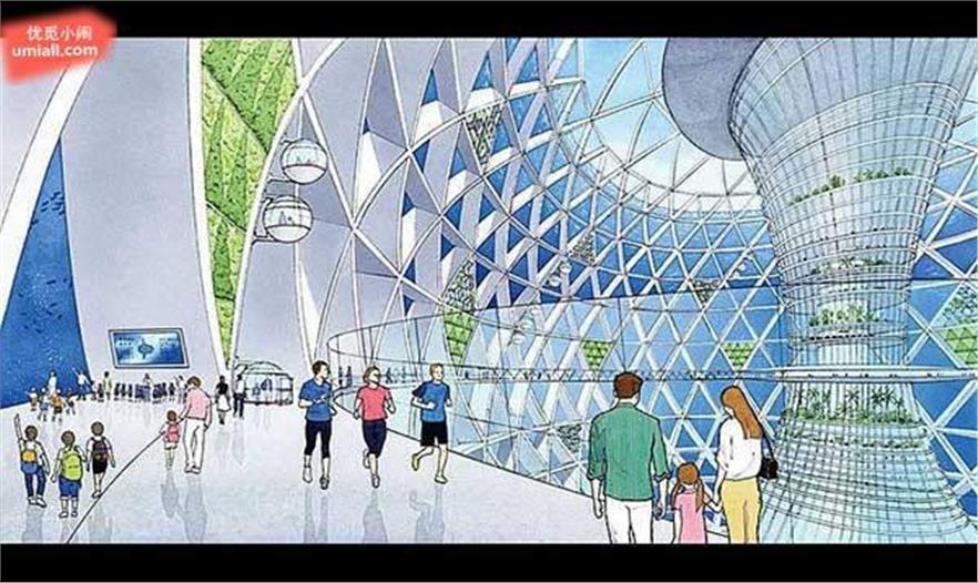 稱作”蔚藍(lán)花園 (Blue Garden) “的直徑500公尺大的球狀物是居住的空間!