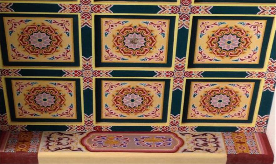 天花板即室內(nèi)頂棚,因特征而得名。“天”,指房子的頂棚位置;“花”,即花紋、文采,說的是房頂?shù)难b飾。古代建筑的頂棚,多成棋盤格布置,上繪龍鳳、花卉、幾何紋樣,或做成浮雕圖案,故名“天花”。