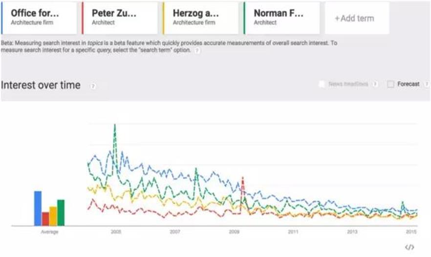 3.福斯特的標(biāo)簽是高科技流派建筑。建筑和科技的流行度都下降了,高科技流派建筑流行度也下降了,福斯特流行度也下降了。谷歌沒有說三者有因果關(guān)系。