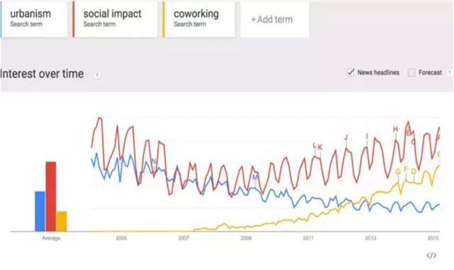 8.城市建筑流行度下降,大都會事務(wù)所流行度下降。谷歌沒說兩者有因果聯(lián)系。社會影響和聯(lián)合辦公流行度上升。谷歌沒說聯(lián)合辦公空間設(shè)計、廠房改造和社會參與式設(shè)計項目會越來越多。