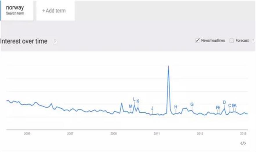 11.挪威的流行度平穩(wěn)。谷歌沒說甲方是因為斯諾海獺建筑融入了北歐景觀理念所以對它感興趣還是因為斯諾海獺來自挪威所以對它感興趣。