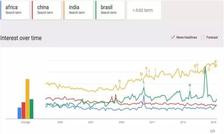 12.中國流行度下降。非洲流行度平穩(wěn)。印度流行度飆升。谷歌沒說中國建筑黃金時期早已過去。未來二十年印度將是建筑黃金市場。