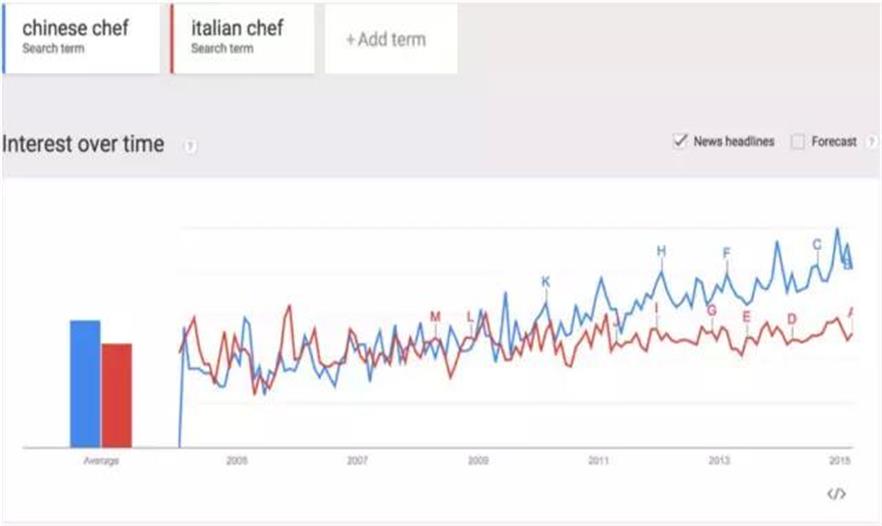 15.中國廚師流行度上升。谷歌沒說找不到工作的建筑師可以做中國廚子。