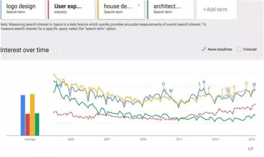 5.哈佛設(shè)計學(xué)院和英國建筑聯(lián)盟流行度下降趨勢完全吻合。谷歌沒有說二者是分享院長的好基友。