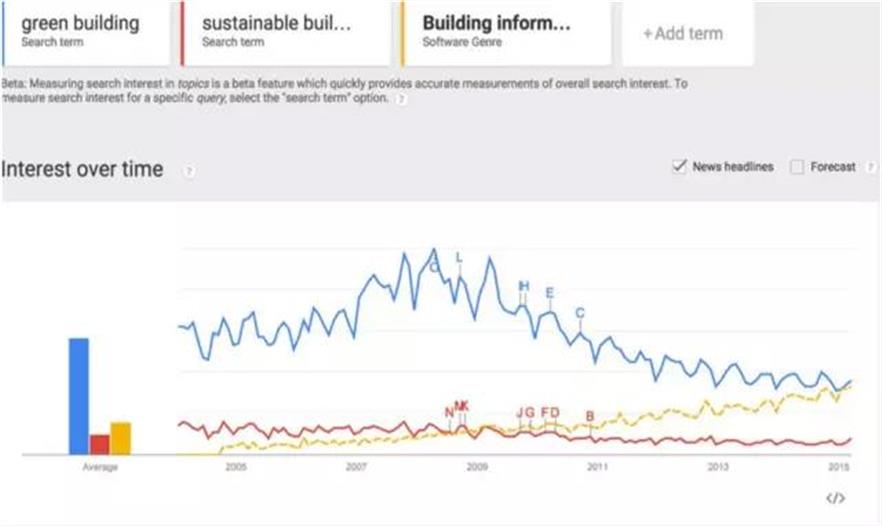 17.綠色建筑和可持續(xù)建筑流行度下降。建筑信息模型流行度上升。谷歌沒說現(xiàn)在找工作精通Revit比有LEED認(rèn)證好使多了。