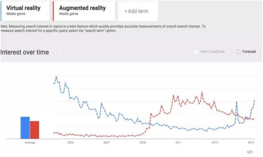 19.虛擬現(xiàn)實流行度上升,增強(qiáng)現(xiàn)實流行度下降。谷歌沒說找不到工作的建筑師可以設(shè)計虛擬建筑。
