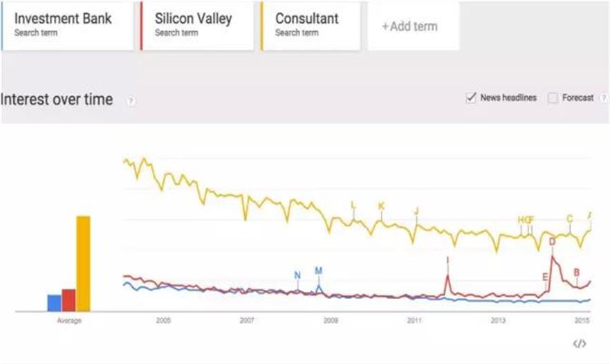 20.投行和咨詢流行度下降。硅谷流行度上升。谷歌沒說硅谷技術(shù)創(chuàng)業(yè)精英喜歡粉絲來偶像家里一邊談宏偉理想一邊簽收購,不太在乎錢。不喜歡談判時候旁邊坐著外人精打細(xì)算。