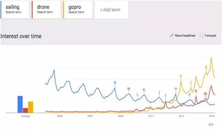 21.帆船流行度下降。無人機(jī)流行度上升。谷歌沒說王澍老師講座中提到,杭州的現(xiàn)代建筑從屋頂上看很丑,而水岸山居從無人機(jī)上拍照看很美。在人人都能用上帝視角看城市之前,建筑師要開始認(rèn)真對待第五立面了。