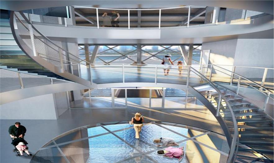 “該方案中你可以有很多視角來觀看我們的城市,它利用混凝土柱提升自身的高度,建筑四周全部采用玻璃幕墻,因此在室內(nèi)會有非常好的觀景體驗(yàn)。”