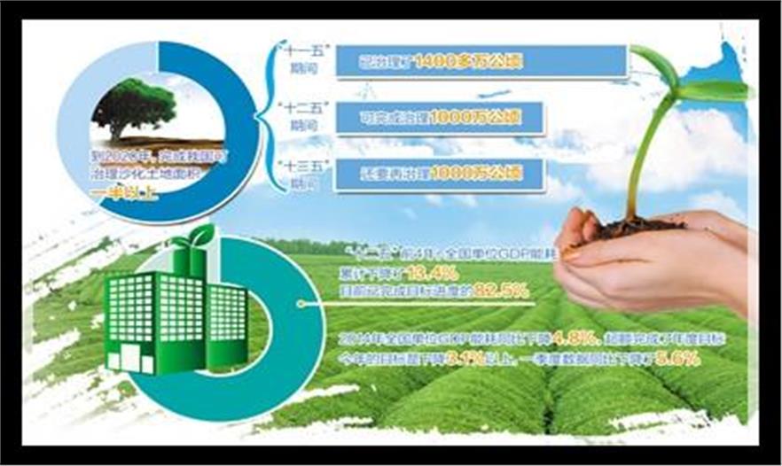 在生態(tài)治理上,國(guó)家林業(yè)局計(jì)財(cái)司副司長(zhǎng)張艷紅表示,我國(guó)沙化土地共有173萬(wàn)平方公里,可治理沙化土地為53萬(wàn)平方公里。“十一五”期間已治理了1400多萬(wàn)公頃,“十二五”期間預(yù)計(jì)可完成沙化土地治理1000萬(wàn)公頃,未來(lái)“十三五”還要再治理1000萬(wàn)公頃。到2020年,就能夠完成原來(lái)預(yù)定的目標(biāo),完成我國(guó)可治理沙化土地面積一半以上。