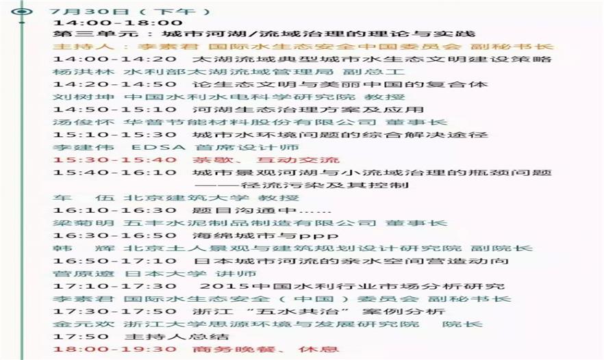 "2015城市景觀河湖/小流域治理與生態(tài)修復論壇"——最新議程安排發(fā)布