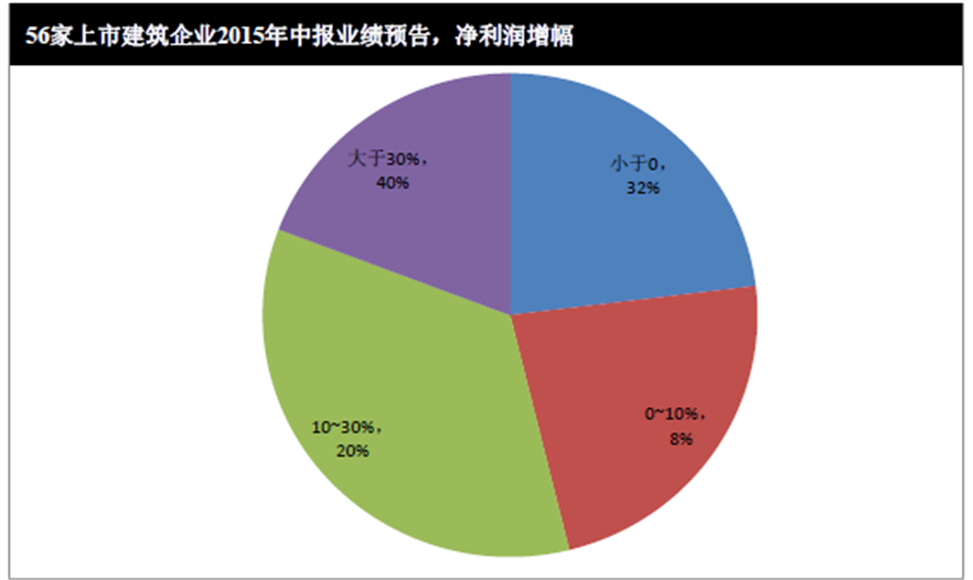 截止2015年7月22日,魯班咨詢重點觀察的56家上市建筑企業(yè)中,有26家對公司對二季度業(yè)績進行了預測或修正。這26家公司主要來自于房建、公路隧道、水利、化工、幕墻、裝修裝飾、鋼構等領域。其中,15家公司表示業(yè)績預增,另有6家預減或預虧,占全部26家的23.1%。相比去年同期披露業(yè)績預告的21家企業(yè)中,66.7%的企業(yè)表示業(yè)績預增,而今年26家中業(yè)績預增企業(yè)占比57.7%。2015年上市建企業(yè)績開始分化,預計今年上市建企的總體經(jīng)營業(yè)績略差于去年同期。