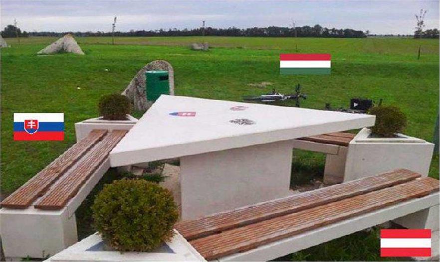 斯洛伐克—奧地利—匈牙利:奧地利和斯洛伐克間的分界線是歐洲最短的一條,僅長91公里,設立于1993年。其起始處與捷克、斯洛伐克和奧地利的國界線相交。奧地利和匈牙利的邊界線長366公里,匈牙利和斯洛伐克的邊界線長677公里。因此,在這里有可能3個人去野餐,但每個人都待在不同的國家!