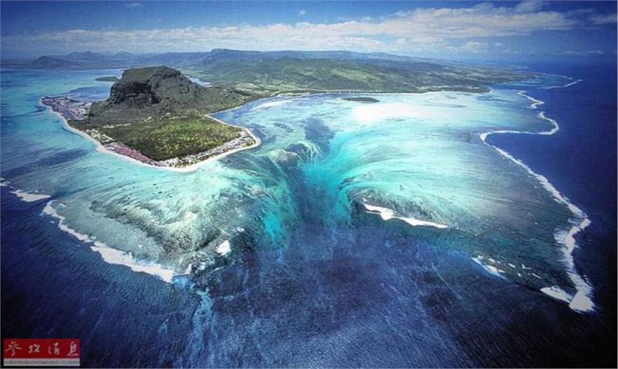 在印度洋毛里求斯海岸航拍的“水下漩渦”。盡管從圖片中看起來像是水下瀑布,但事實上這是由于泥沙堆積造成的視覺差。