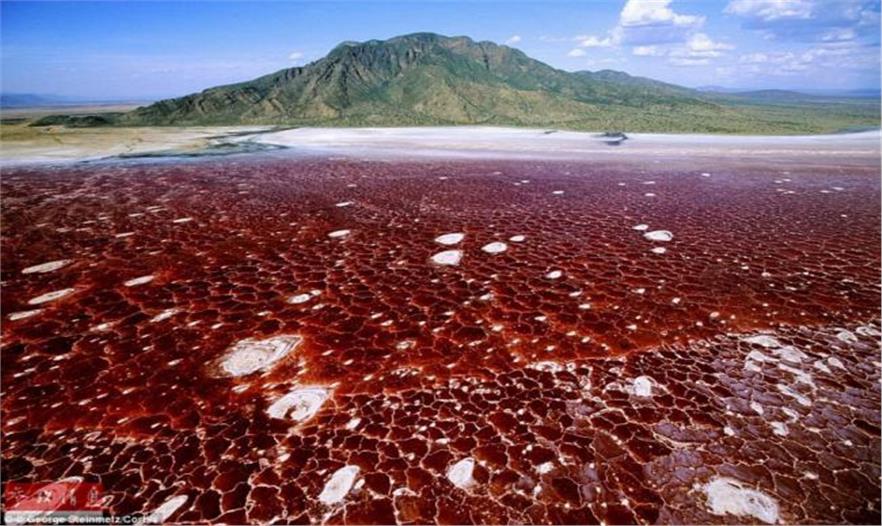 在坦桑尼亞和肯尼亞交界處的東非大裂谷,納特龍湖是最大的堿湖之一。嗜鹽藻讓湖水變成了紅色。納特龍湖中含有不同尋常的礦物質(zhì),這些礦物質(zhì)大多數(shù)來自于周圍的火山。