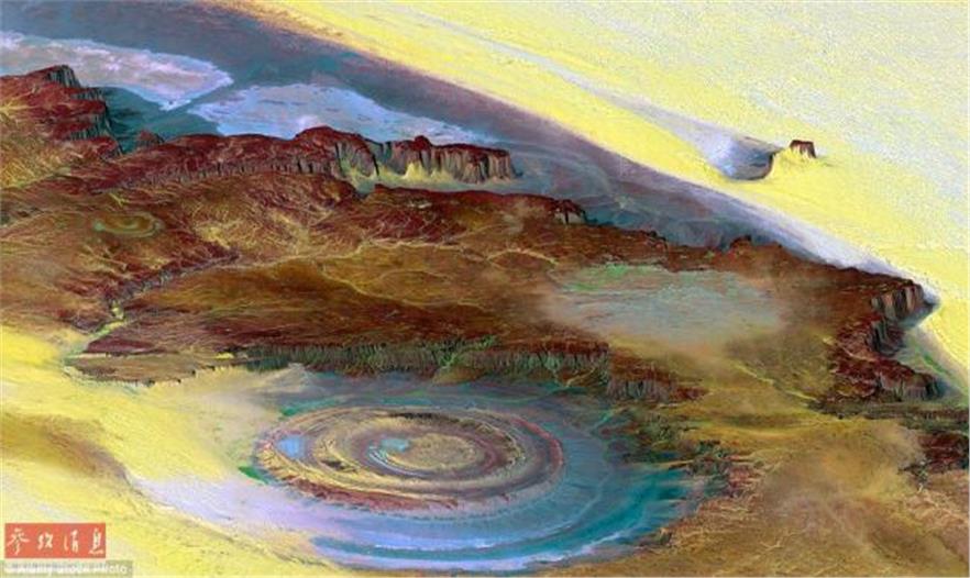 看起來就像是梵高的抽象畫,但其實這是撒哈拉沙漠中的景色。這種地形被稱為理查特結(jié)構(gòu)。