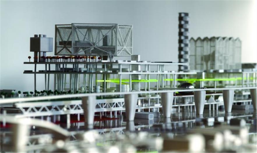 模型細(xì)節(jié)展示出熱電廠(chǎng)、企業(yè)研究中心,以及可移動(dòng)的大學(xué)合作空間。該作品場(chǎng)地位于底特律 Packard 廠(chǎng)址。