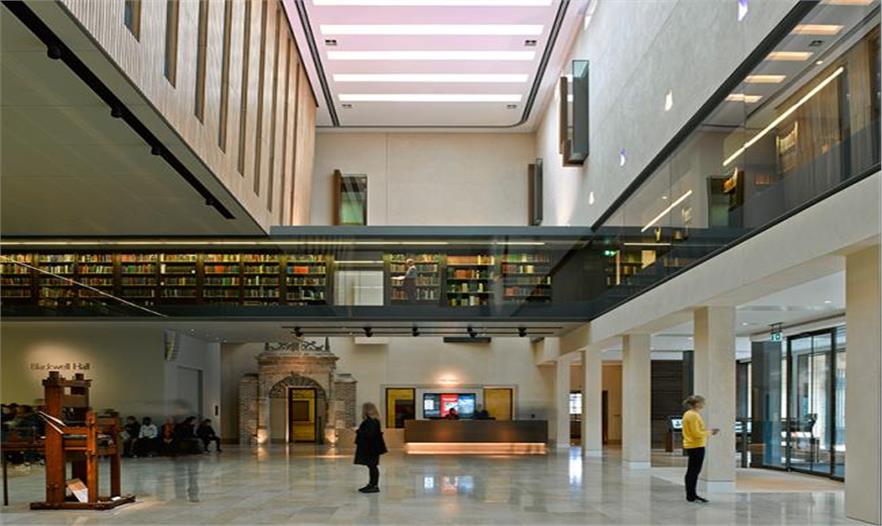 Wilkinson Eyre在牛津大學(xué)的另一場地改造了韋斯頓圖書館,設(shè)計采用了大膽的玻璃夾層,能夠露出內(nèi)部的珍藏。作為大學(xué)中世界著名的博德利圖書館的一部分,它被列為二級保護(hù)建筑(原為新博德利),最初是由Giles Gilbert Scott爵士于20世紀(jì)30年代設(shè)計而成。該項目為特色館藏打造了高品質(zhì)的儲藏空間,主要服務(wù)于學(xué)術(shù)人員。在公共空間擴(kuò)建了新的展覽廳和演講廳。