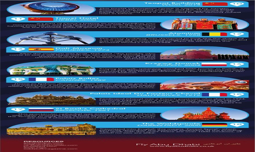 在建筑領(lǐng)域的標(biāo)新立異方式許許多多,總有一些能突破你的預(yù)期而只能被形容為“奇怪”。這張清單有著18座上榜建筑包含了那些特立獨(dú)行的設(shè)計(jì),是由 Fly Abu Dhabi編輯而成。其中一些案例是來自 Robert Venturi 和 Denise Scott Brown的開創(chuàng)性文章《從拉斯維加斯學(xué)到的》 Learning from Las Vegas里面垂直飛起的“鴨子”,其他的來源也包含了非正統(tǒng)的曲線,跳躍的方向和尖銳的幾何體。但是共性就是——它們一點(diǎn)也不像你日常見到的房子。