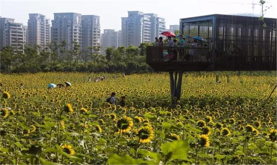 該公園自建成之后,成為當(dāng)?shù)鼐用駱O為喜愛的休閑游憩場(chǎng)所,也成為衢州市的新名片。鹿鳴公園由此轉(zhuǎn)變成活力熱鬧的城市綠洲,為市民豐富多彩的活動(dòng)提供了理想場(chǎng)所。公園內(nèi)季節(jié)性的絢麗花甸,在社交媒體的傳播下,吸引了大量的市民來此聚集,也提醒了在城市奔忙的人們對(duì)四季變換的意識(shí),重溫已漸模糊的故土的記憶(中國城鎮(zhèn)人口的80%,在二三十年前,均生活在農(nóng)村地區(qū))。層層田地,綿延至溪邊,種植著豐產(chǎn)而又美麗的作物,為稠密的城市提供清新怡人的綠色空間。精心設(shè)計(jì)的步道系統(tǒng)將自然景色一一框景入畫,為人們展現(xiàn)著這片土地的歷史和故事,憧憬著更美好的未來。