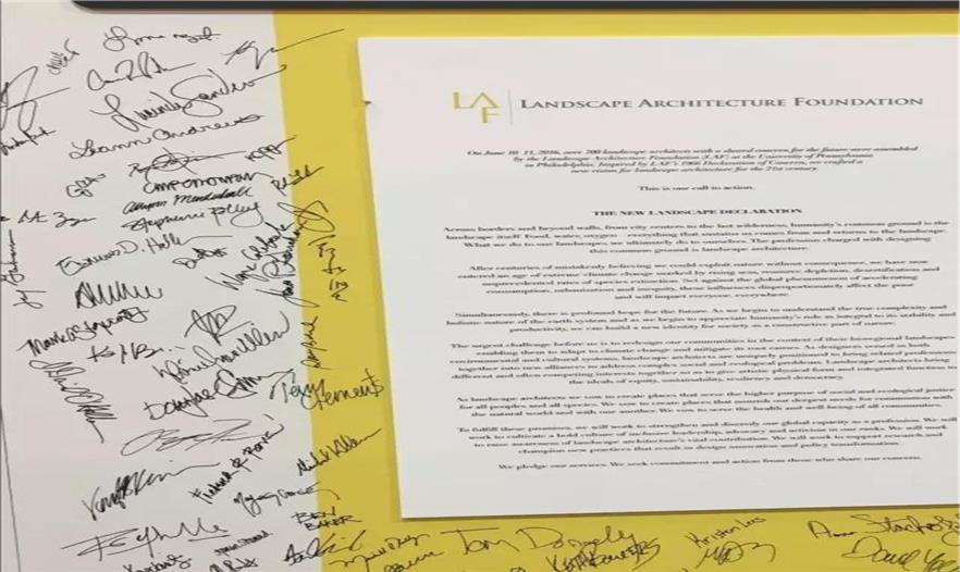 作為景觀設(shè)計(jì)師,我們宣誓以所有人類(lèi)的社會(huì)公正和所有物種的生態(tài)公平為我們的高級(jí)目標(biāo),來(lái)營(yíng)造場(chǎng)所;我們宣誓為滿足人類(lèi)對(duì)人與人、人與于自然和諧關(guān)系的內(nèi)在需求來(lái)創(chuàng)造場(chǎng)所;我們宣誓,為所有人類(lèi)的健康和富裕而服務(wù)。