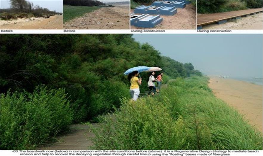 位于華盛頓市的濱水中心會(huì)同城市、建筑和景觀領(lǐng)域的知名專業(yè)人士評(píng)出了近22年來(lái)全球范圍內(nèi)最突出的Waterfront項(xiàng)目。北京土人景觀與建筑規(guī)劃設(shè)計(jì)研究院(Turenscape)憑借“再生設(shè)計(jì):中國(guó)秦皇島海濱景觀帶生態(tài)修復(fù)工程”榮獲濱水中心2009年度環(huán)境保護(hù)和改善獎(jiǎng)。