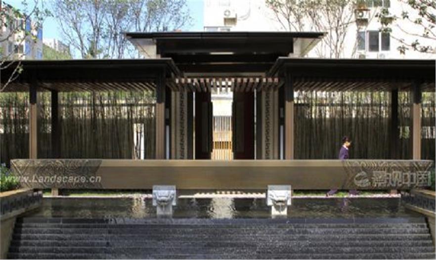 該新中式景觀的設(shè)計創(chuàng)意是融合佛教寺院園林的意境,打造“空、靈、靜”的文化景觀。 唐朝詩人常建膾炙人口的《題破山寺后禪院》為我們的景觀設(shè)計提供了情景交融的庭院設(shè)計線索與主題。整個景觀格局取自傳統(tǒng)園林的前庭后園的布局,前庭凸顯倫理、秩序和邏輯,后院以地勢圍合形成山水園林,使人身在園內(nèi)有幽居山谷之中的感覺。