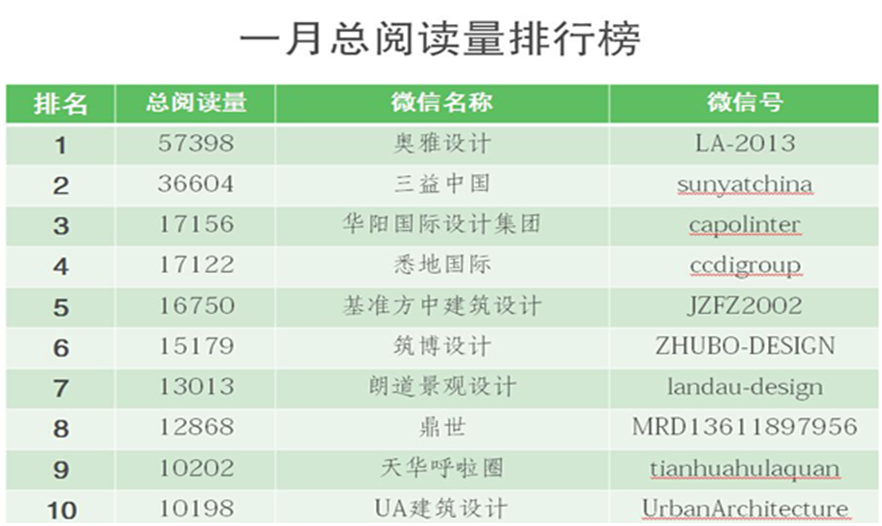 2015年2月5日下午,Archina建筑中國(guó)正式公布 “建筑設(shè)計(jì)行業(yè)移動(dòng)互聯(lián)調(diào)查報(bào)告”, “奧雅設(shè)計(jì)”微信公眾號(hào)在2015年1月總閱讀量排名中榮登榜首。奧雅在此感謝各位朋友的厚愛(ài),敬請(qǐng)大家持續(xù)關(guān)注與支持!