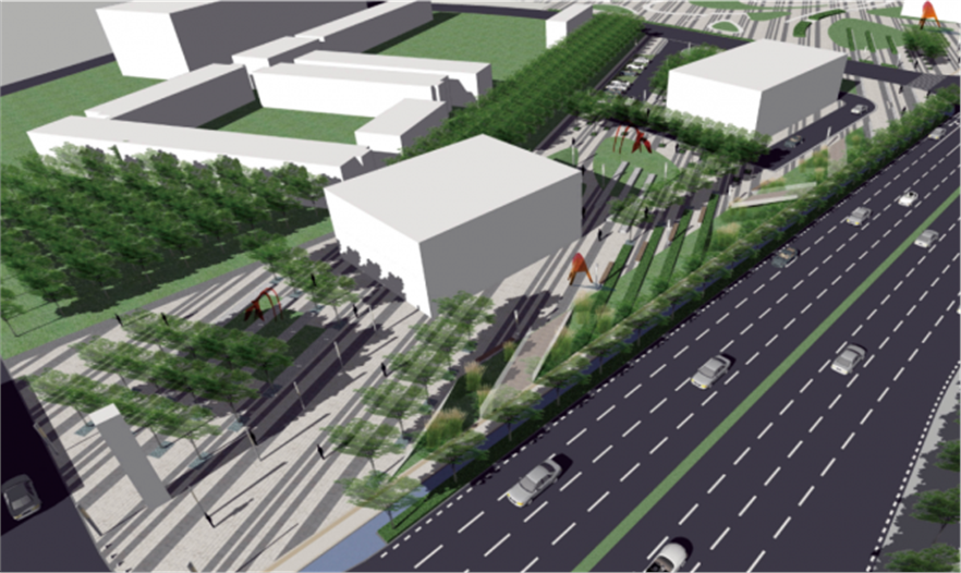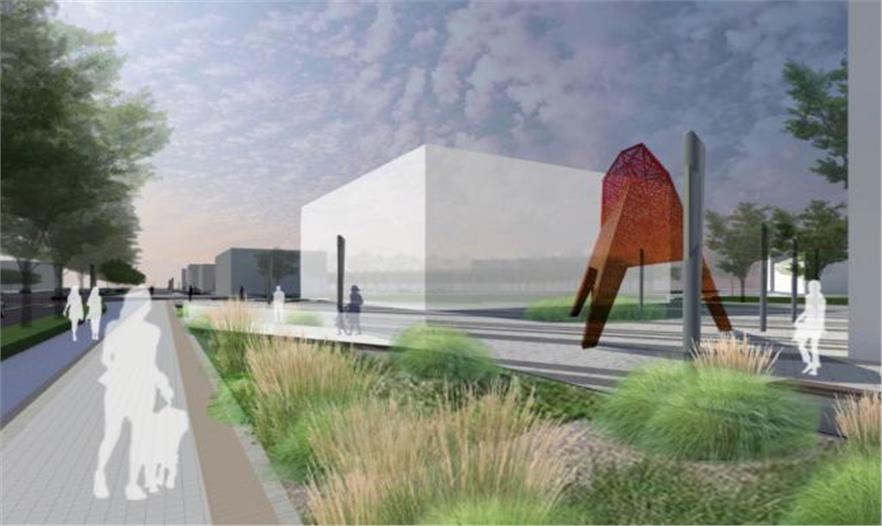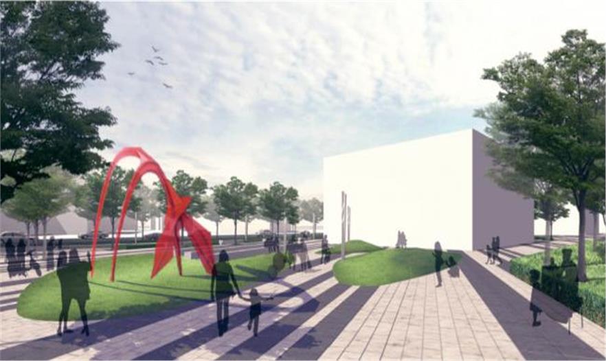 奧雅設(shè)計(jì)團(tuán)隊(duì)從塑造門戶形象、形成區(qū)域城市景觀聯(lián)動(dòng)和控制開發(fā)時(shí)序出發(fā),結(jié)合項(xiàng)目特點(diǎn)和場(chǎng)地現(xiàn)狀,提出了“定制景觀、立體景觀、彈性景觀”的景觀策略,力圖營(yíng)造一個(gè)藝術(shù)、活力、創(chuàng)意的城市復(fù)合公共空間。項(xiàng)目采取定制化、創(chuàng)新化的設(shè)計(jì)原則,與區(qū)域整體綠化網(wǎng)絡(luò)相鏈接,充分體現(xiàn)自身特色和價(jià)值。同時(shí)結(jié)合生態(tài)雨水花園、公共裝置藝術(shù)、立體互動(dòng)交通等景觀手段,增強(qiáng)場(chǎng)地藝術(shù)生態(tài)性和識(shí)別性,彰顯獨(dú)特魅力,烘托出新區(qū)國(guó)際化都市氛圍。