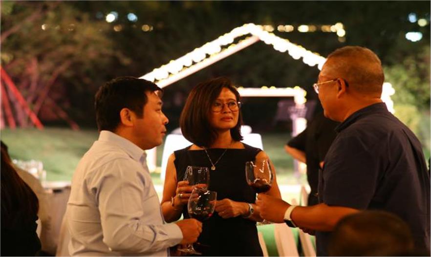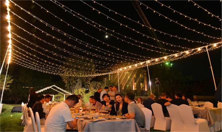 晚宴高會篇中,三磊特邀法國資深品酒師jerome為現(xiàn)場嘉賓帶來三款紅酒的品鑒,甘醇美酒,將大家體驗(yàn)另一番味覺的世界。晚風(fēng)輕拂,朦朧夜色,伴隨著駐唱歌手的曼妙歌聲,輕酌慢品之間,嘉賓們暢敘幽情,游目騁懷。